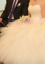 Платье в отличном состоянии, б/у 1 раз. Цвет айвори. В подарок подъюбник, шубка, перчатки и сумочка невесты.